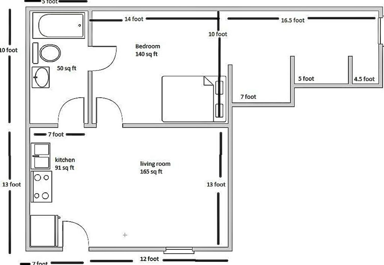 1 bedroom, 1 bathroom